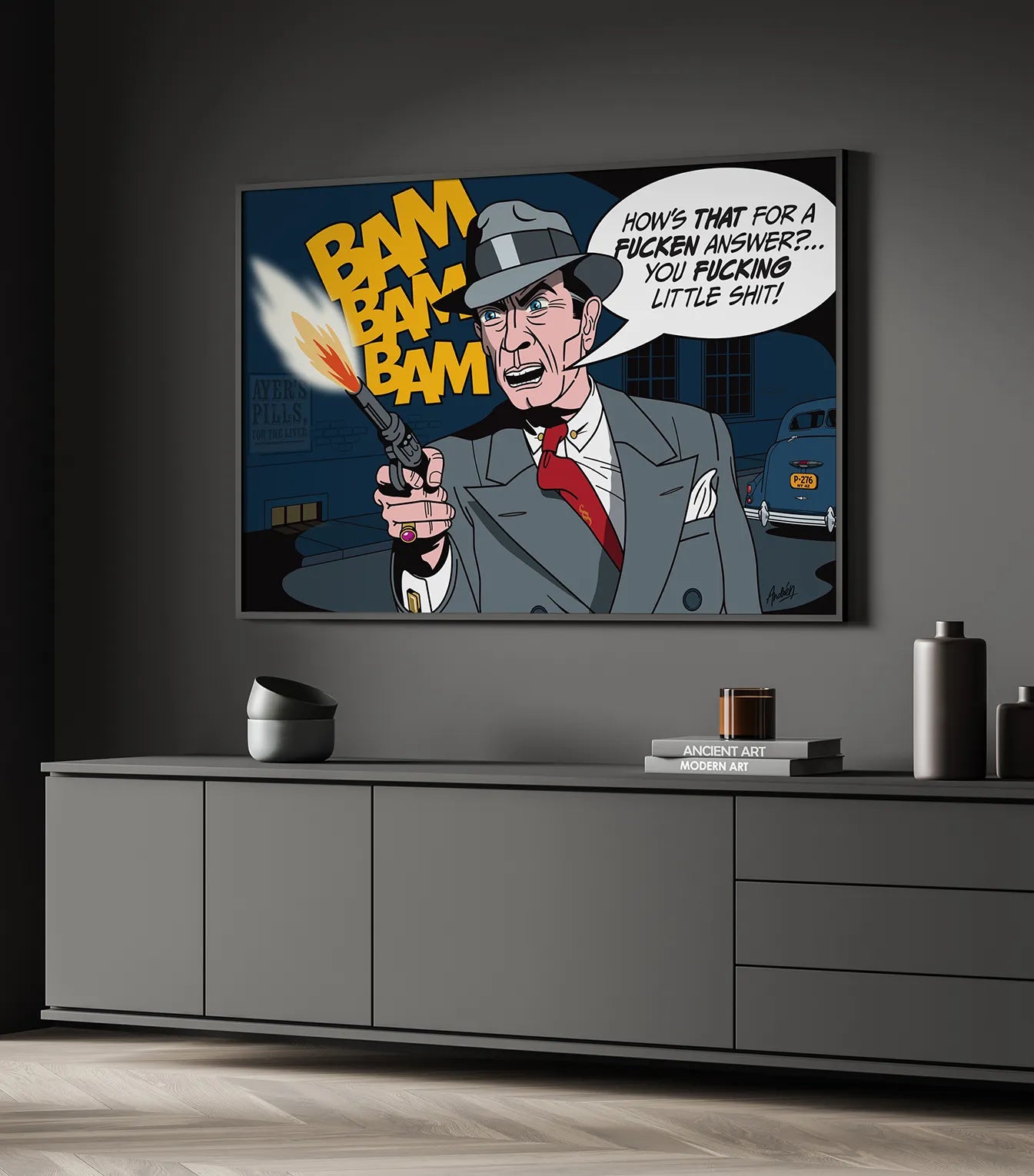 Based on an old gangster movies from the 40’s and the 50’s. A real eye catcher for any living room decor.