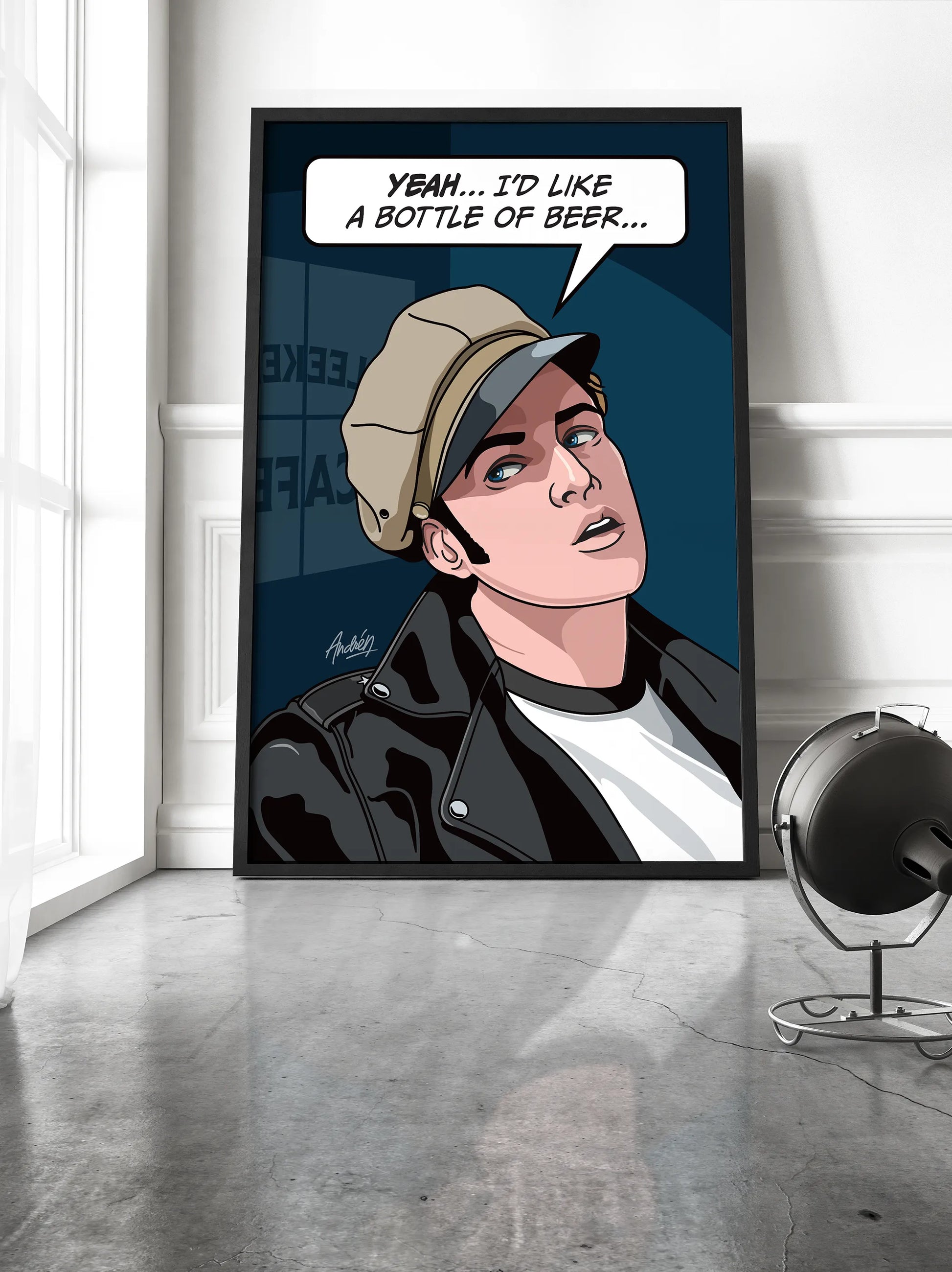 Illustration created from a scene of the American dramatic film The Wild One, starring Marlon Brando. Released in 1953, The Wild One is recognized as being the initial outlaw biker movie.